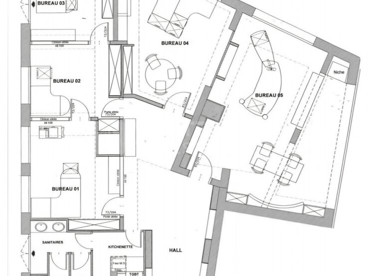Situé dans une résidence avec service conciergerie 24h/24, magnifique bureau agencé et décoré avec goût, (bureaux, chaises, armoires, tables...), composé d'un grand hall d'entrée, un grand bureau/salle de réunion, 4 autres bureaux, kitchenette, toilette hommes, toilette femmes avec sas lavabos, climatisation.