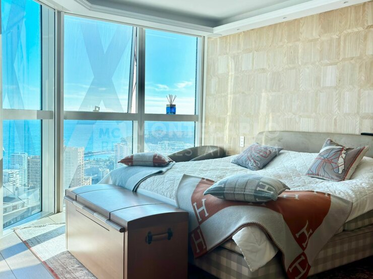 L'appartement situé en étage élevée se compose d'un beau double séjour, d'un cuisine séparée et équipée. Il dispose de trois chambres avec salles de bains, un toilette invité et un bureau.