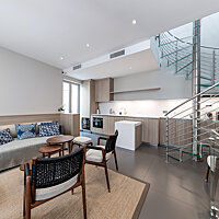 La propriété se compose de 5 étages plus un toit terrasse dominant les maisons de Monaco Ville et présente actuellement une superficie d'environ 370 m² dont 70 m² de terrasses.