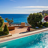 Situé dans le quartier de Fontvieille, ce charmant 4/5 pièces en rez-de-jardin bénéficie d'un emplacement ensoleillé et face à la mer. Il dispose d'une vaste salle à manger dotée d'une cuisine américaine spacieuse, un salon séparé, un bureau, une seconde cuisine, trois chambres, trois salles de bains, dont deux en suite.