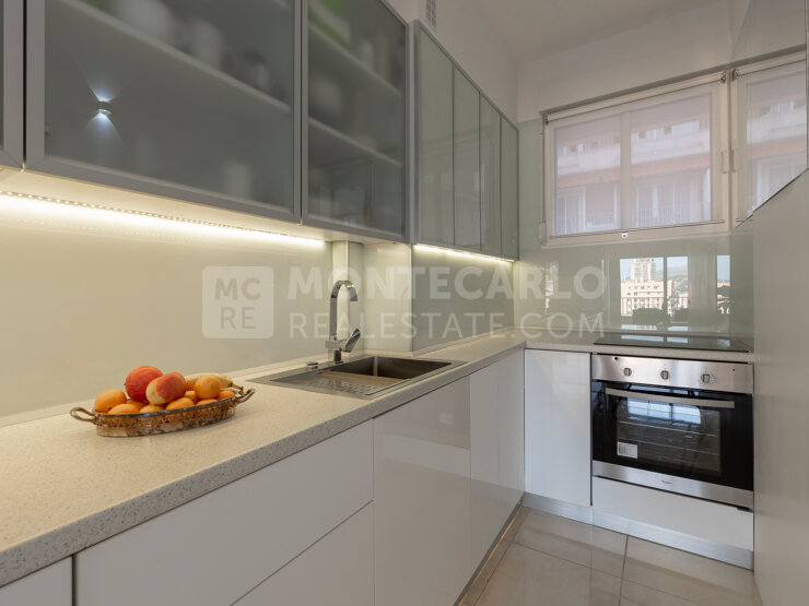 Dans le quartier du Jardin Exotique, dans un quartier résidentiel et calme, élégant appartement familial de 3 chambres, lumineux et avec vue sur la mer