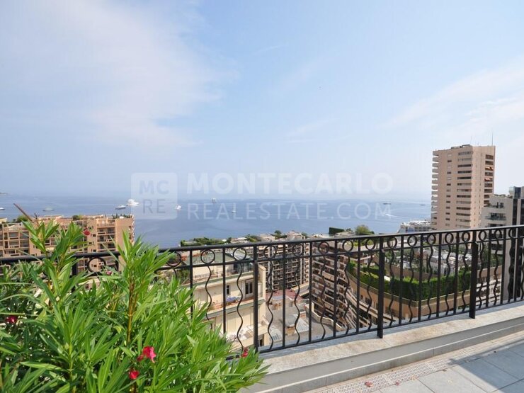 Situé dans le Carré d'Or et à proximité de tous les commerces, superbe penthouse en duplex avec magnifique vue mer panoramique et sur l'extension Mareterra.
