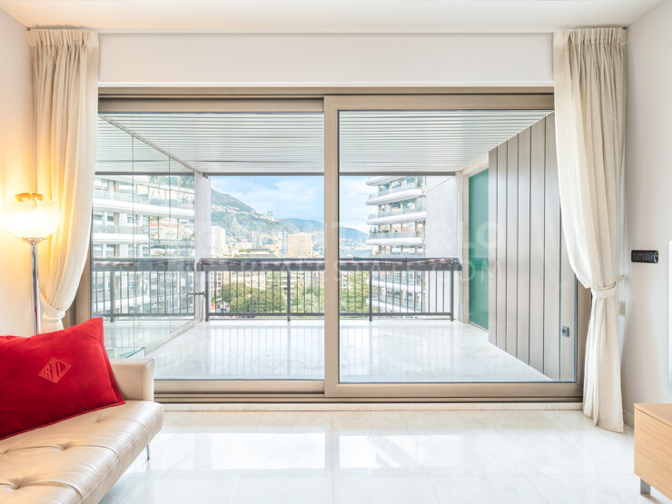 This beautiful 2-bedroom apartment has been completely refurbished and is located on the 9th floor of the Park Palace, a luxury building in the heart of the Carré d'Or, just a few minutes' walk from Place du Casino and its luxury bo...