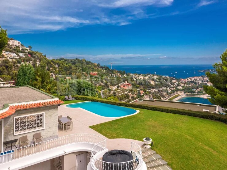 This villa enjoys a privileged location on a flat 1,580 m² plot, offering panoramic views over the Bay of villefranche-sur-mer and Cap Ferrat. It f...