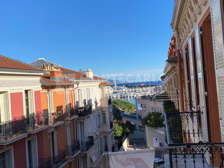 Magnificent and spacious studio completely renovated with fine materials. Very nice view of the Port Hercule the Rocher from a large terrace facing south. Entrance, living room, fully equipped kitchen, shower room, cupboards, air conditioning, do...