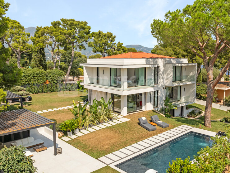 Roquebrune Cap Martin, residential area, panoramic view of the sea and hills, quiet, in a small luxury condominium of just 6 semi-detached villas, just a few minutes' walk from Carnolès town centre and all amenities, with direct access, discreetly...