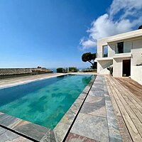 A 100 sqm living area bathed in natural light, thanks to custom sliding glass doors opening onto a 73 sqm terrace with panoramic sea views. The seamless indoor-outdoor connection offers a unique perspective and is perfect for hosting family and friends in a warm and harmonious ambiance. A contemporary open kitchen equipped with high-end appliances (SMEG, steam oven). An integrated wine cellar to delight fine wine enthusiasts.