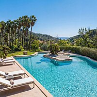 Outside, a spectacular leisure area is organized around an extraordinary 35 x 10-meter swimming pool with an island, integrated into the park, as well as a landscaped lake, creating a private resort atmosphere facing the Mediterranean.