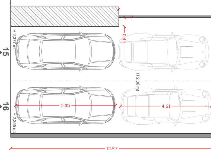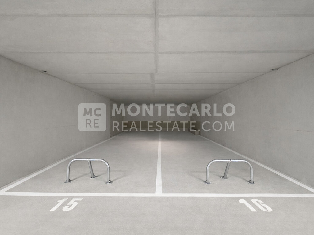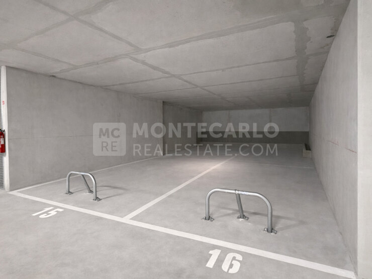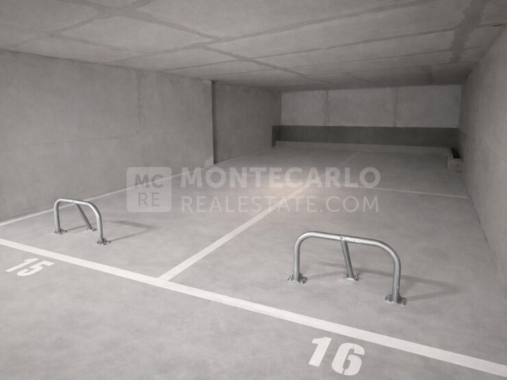 Four spacious parking spaces totaling 56 m², ideally located opposite the Parc Saint Roman roundabout and the Monaco police station, with the possibility of closing them with an up-and-over door and already equipped with electricity.