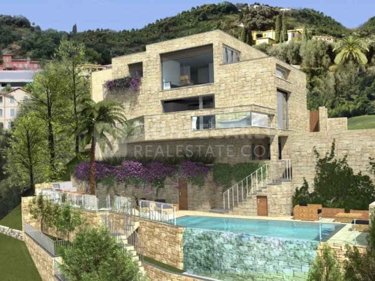 VILLA MENTON GARAVAN - HOUSE IN MENTON GARAVAN - Ideally located in one of Menton’s most sought-after neighborhoods, in the heart of a private and secure estate, this contemporary 212 sqm villa offers a rare living environment combining absolute tranquility with close proximity to the beaches, port, and city center.