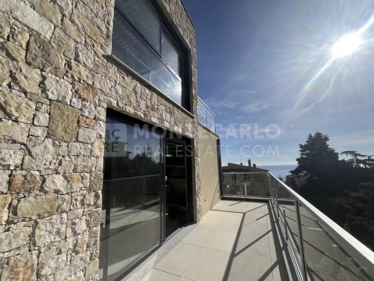 Recently built on a terraced plot of 965 sqm, the property stands out for its generous volumes, natural light, and strong potential. The bright, through-living area opens onto spacious terraces with open views, seamlessly extending the indoor living space outdoors. The interior layout can be customized to suit your personal tastes, allowing you to create a truly unique home.