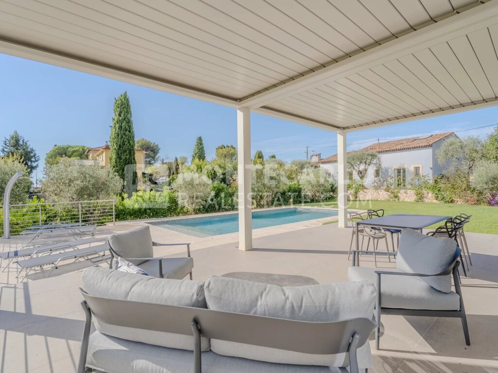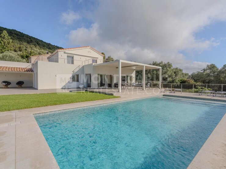 Renovated with high-end materials, the villa features reversible air conditioning and underfloor heating.