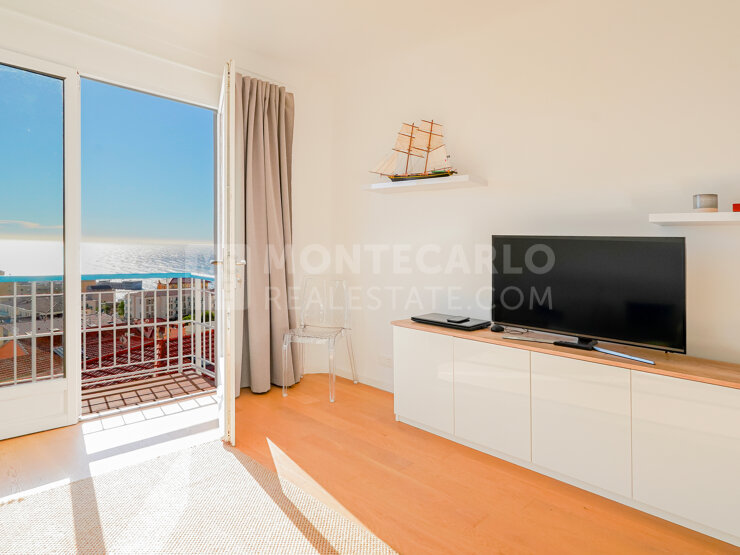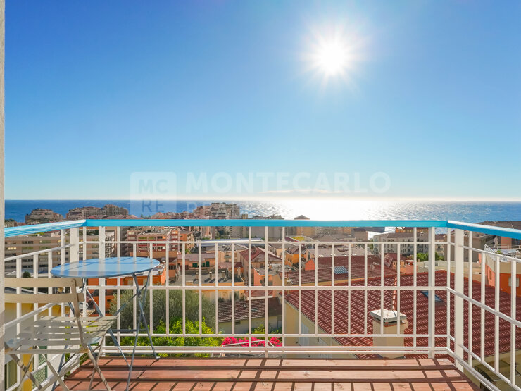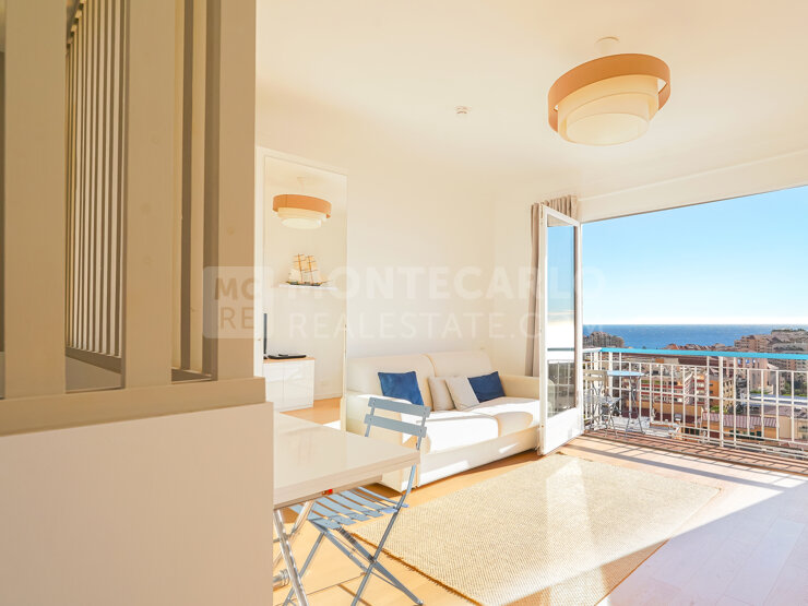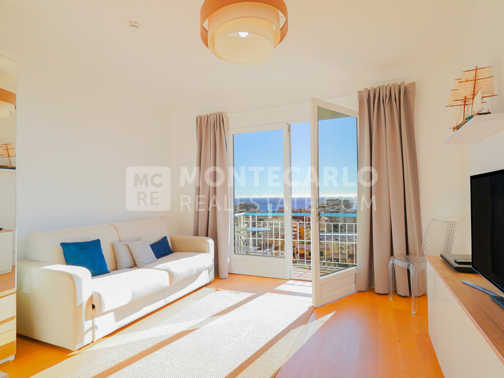 Elegant furnished apartment of 37 sqm on the top floor, offering a magnificent sea view, a quiet and peaceful setting a few meters from Monaco, with cellar and possibility of garage or parking nearby.