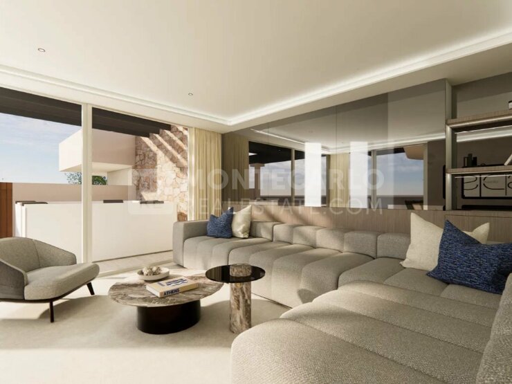 It consists of an entrance, a bright living room with open kitchen, 2 elegant bedrooms, 2 modern bathrooms, a storage room that can be transformed into a sauna (option with supplement), a guest toilet and a spacious terrace to fully enjoy moments of relaxation in the open air.