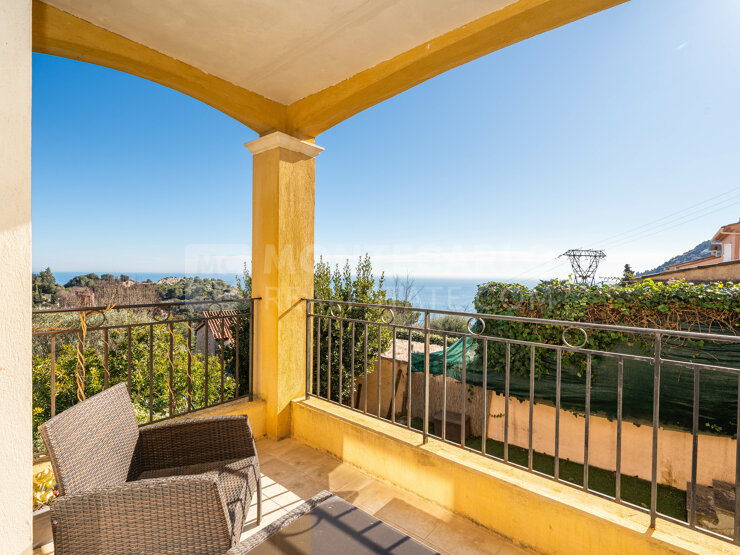 Nestled in a peaceful and easily accessible area, just a five-minute walk from the city centre and shops, this magnificent house offers an exceptional panorama of the sea, the Roman ruins and the Principality of Monaco.