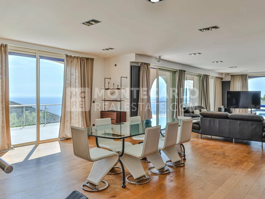 Nestled on the heights of Saint-Laurent-d'Eze, this luxury private villa welcomes you in an exceptional setting, with a breathtaking view of the Mediterranean. Only 15 minutes from the center of Monaco, 25 minutes from Nice airport, and a few minutes from the beaches and the famous village of Eze, it perfectly combines serenity, accessibility and prestige.