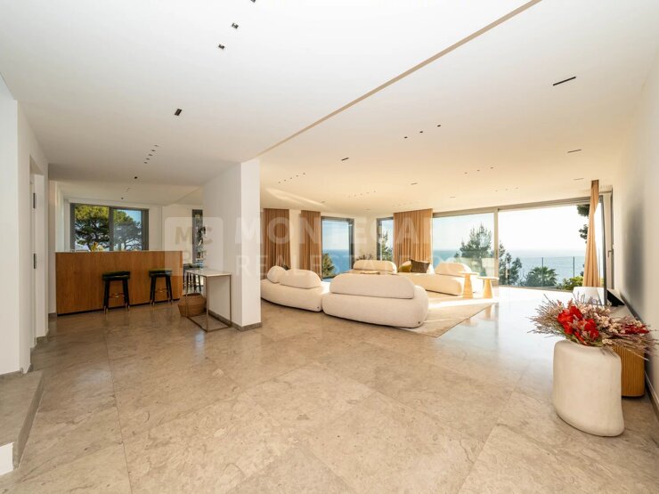 Only 5 minutes from the Principality of Monaco, in a quiet and residential area of Cap d'Ail, this sumptuous new contemporary villa offers a breathtaking view of the sea.