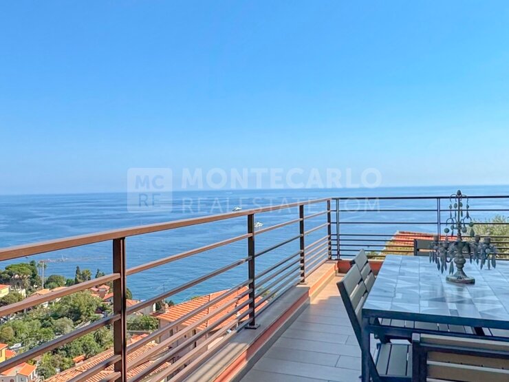 In Roquebrune-Cap-Martin, in a luxury residence equipped with a swimming pool and a solarium, discover this magnificent 3-room duplex offering a panoramic view of the sea and Cap Martin.