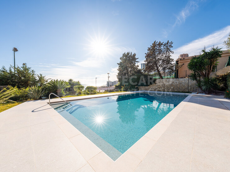 With an area of approximately 90 m2, it consists of a beautiful entrance, a bright living room with dining room, a fully equipped kitchen, a bedroom with its own bathroom and marble dressing room, another bedroom and a shower room, all opening onto a beautiful terrace and garden with private access to the park of the property and exit to the Beach club and tennis.