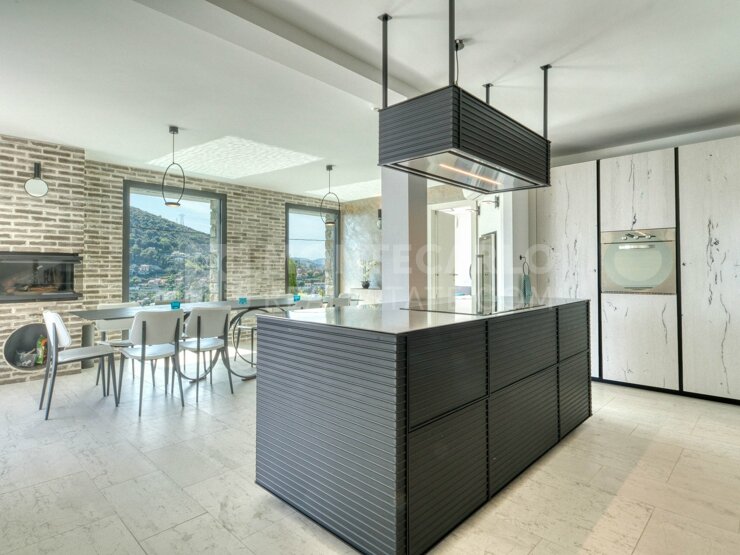 Magnificent modern villa facing south west completely renovated in La Turbie, just 10 minutes from Monaco. This villa built on 3 levels includes high-end services with home automation, indoor / outdoor sound system, sparkling water mixer, light control, hammam, sauna, gym, fire pit ....