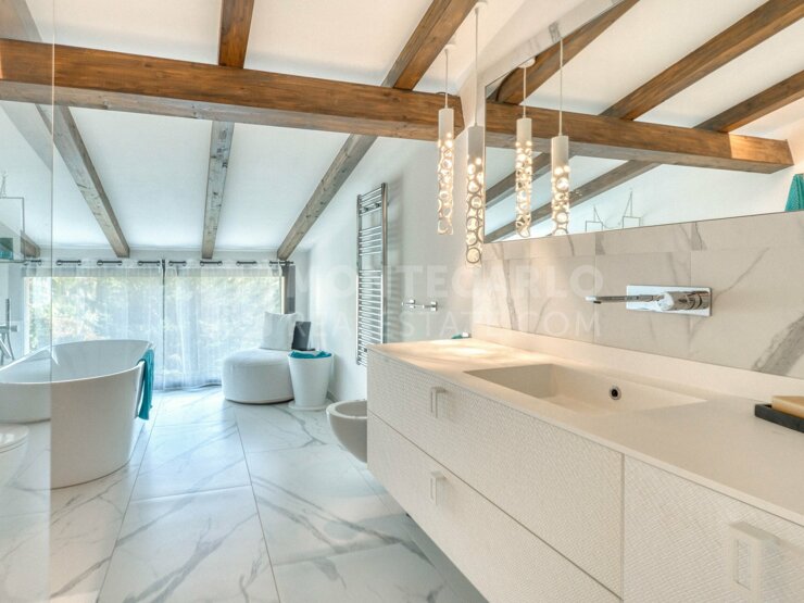 On the second floor we find a beautiful master bedroom with bathroom, two beautiful bedrooms with sea view, one with a beautiful terrace, as well as a home cinema room.