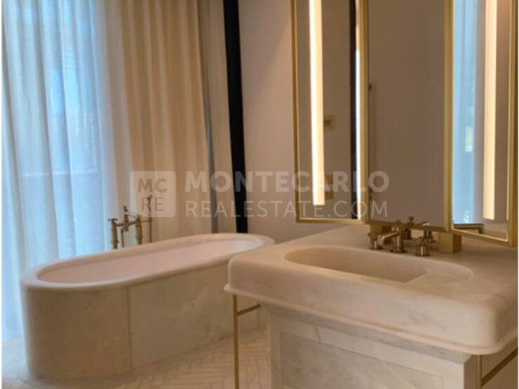 This magnificent duplex, located in Building C, offers 410 sqm of living space and features wrap-around balconies with stunning views over the Casino Square and the sea.