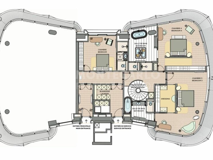 Exceptional duplex apartment located on the 4th and 5th floors of Building E, within the prestigious One Monte-Carlo Residence. Offering 480 sqm of refined living space and 117 sqm of outdoor areas, this rare property impresses with its generous volumes and contemporary elegance.