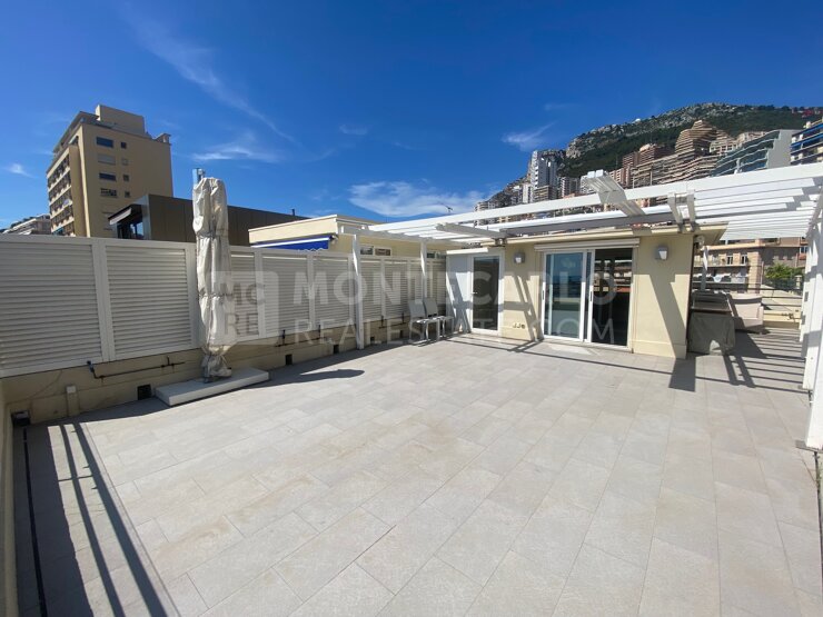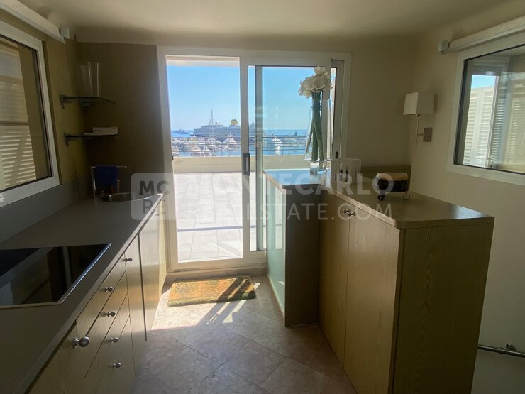 Upstairs, a large room with storage that can be used as a bed or office, and a summer kitchen overlooking the highlight of this apartment, a magnificent terrace of about 60m² overlooking the port of Monaco!