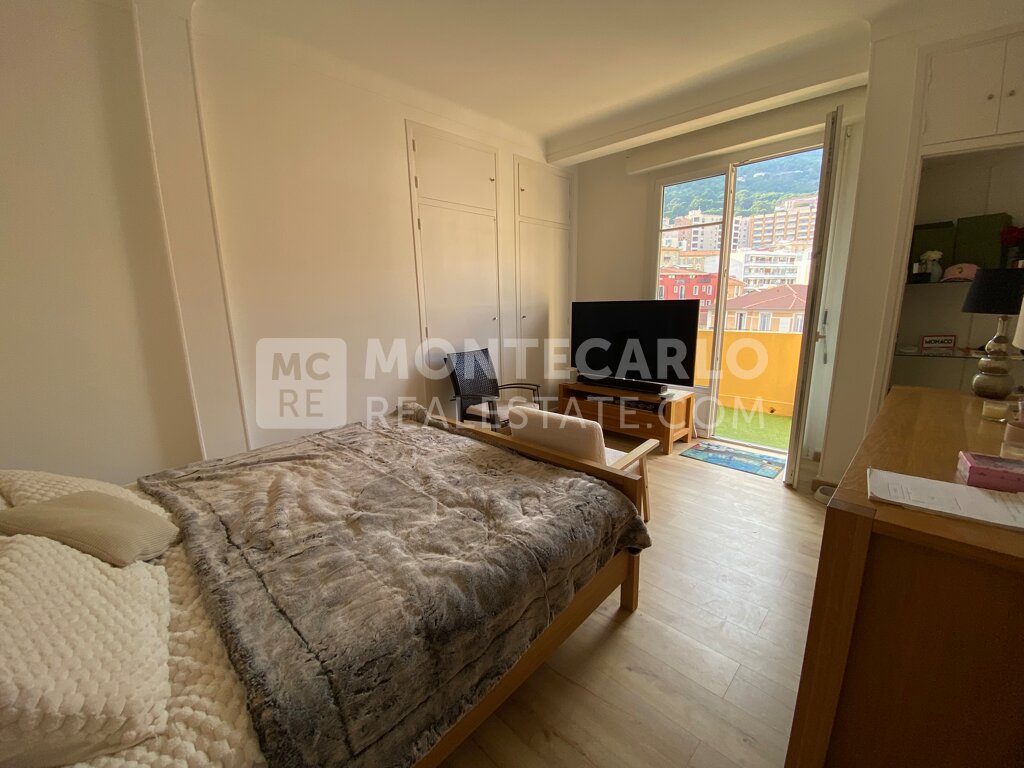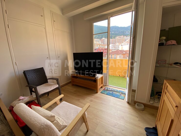 The "Palais du Printemps" is a beautiful Bourgeois building located on the Boulevard de Belgique in a calm residential neighbourhood that is also close to the Harbour through public elevators. The large studio flat located on a high floor has an interesting layout with a fully equipped separate kitchen, and a main room opening on a good size terrace offering nice views on the mountains and the city.