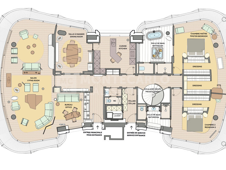 This stunning duplex apartment in Building E, offers 480 sqm of luxurious living space surrounded by 117 sqm of balconies with breathtaking views of Casino Square and the Mediterranean Sea.
