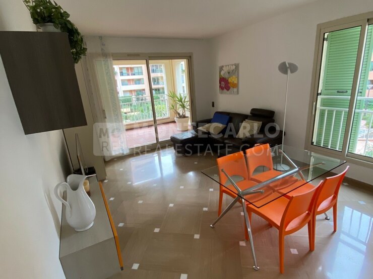 Large, bright two-room apartment located in the heart of Fontvieille harbor, close to shops and restaurants.