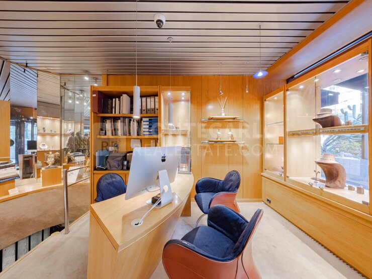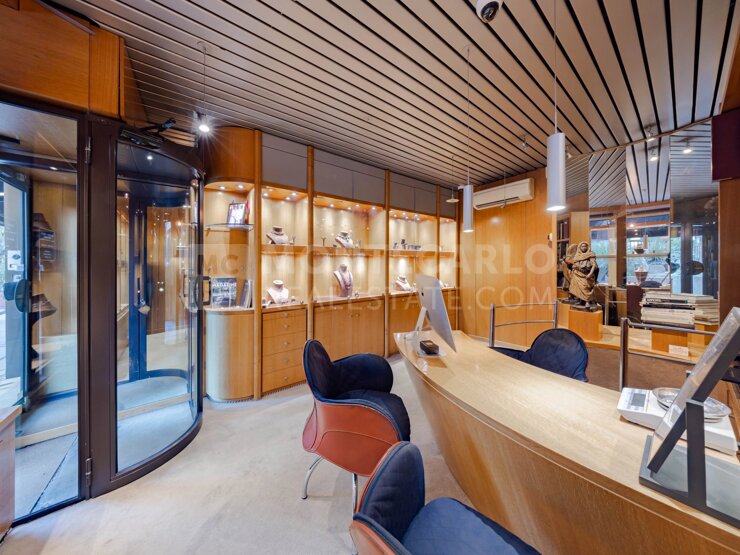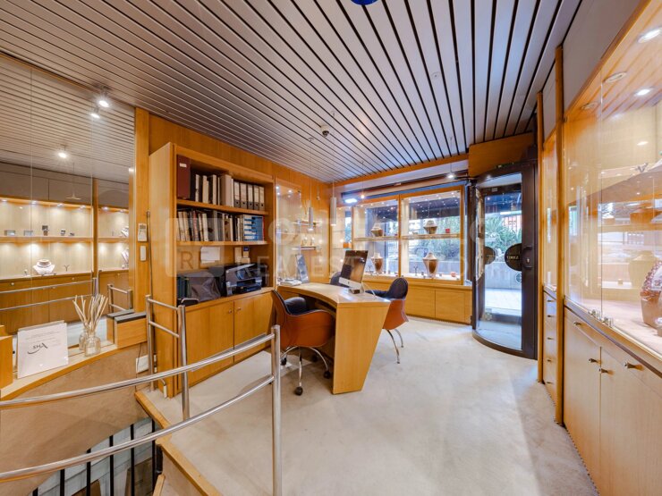 Beautiful jewelry boutique in the Montaigne residence at Carré d'or on the ground floor and part of the basement, with a toilet and storage area.