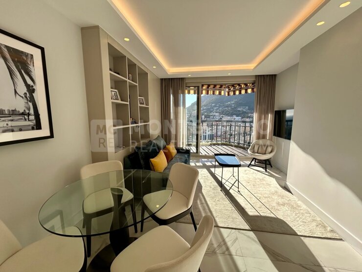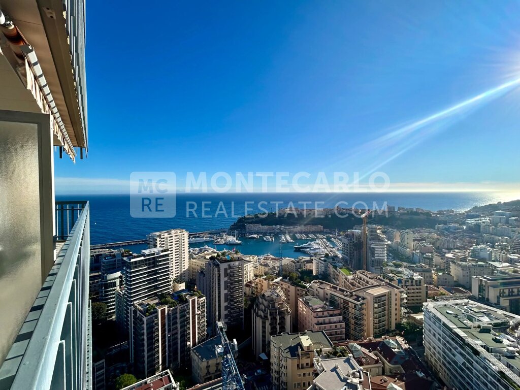 This turnkey apartment is ideal as a pied-à-terre or secure investment in the heart of Monaco. Located on the 27th floor, this renovated apartment with high-end amenities boasts panoramic views of the sea, the port, and the Rock, offering a luxurious living environment.