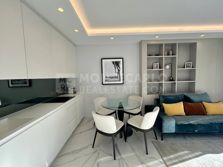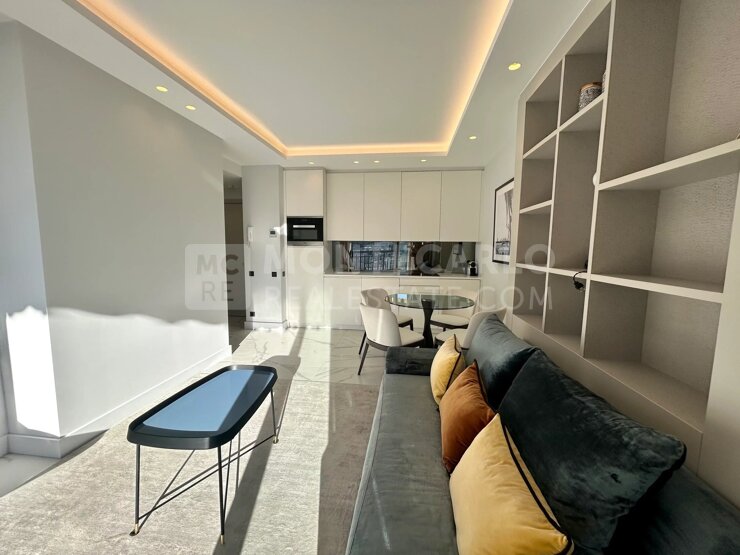 Luxurious, fully renovated one-bedroom apartment located in the luxury residence 'Le Millefiori' with concierge service, just steps from the prestigious Carré d'Or.
