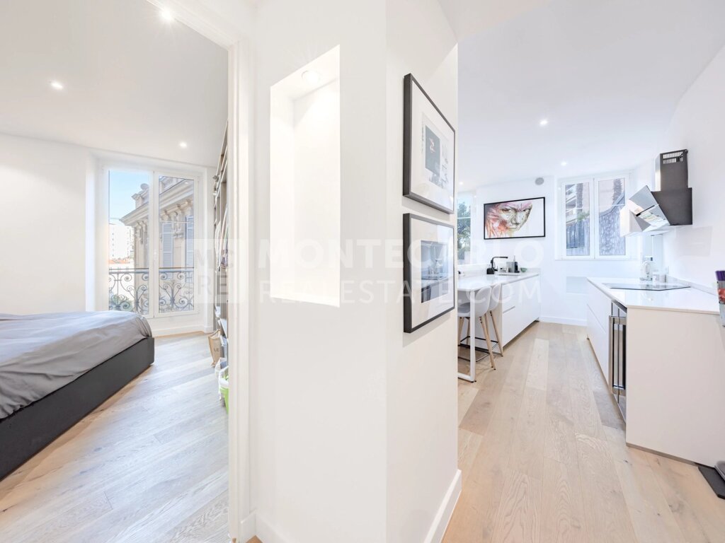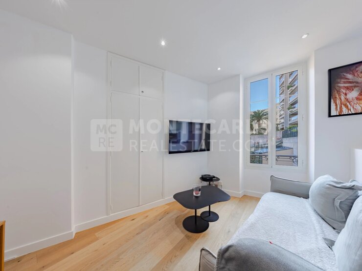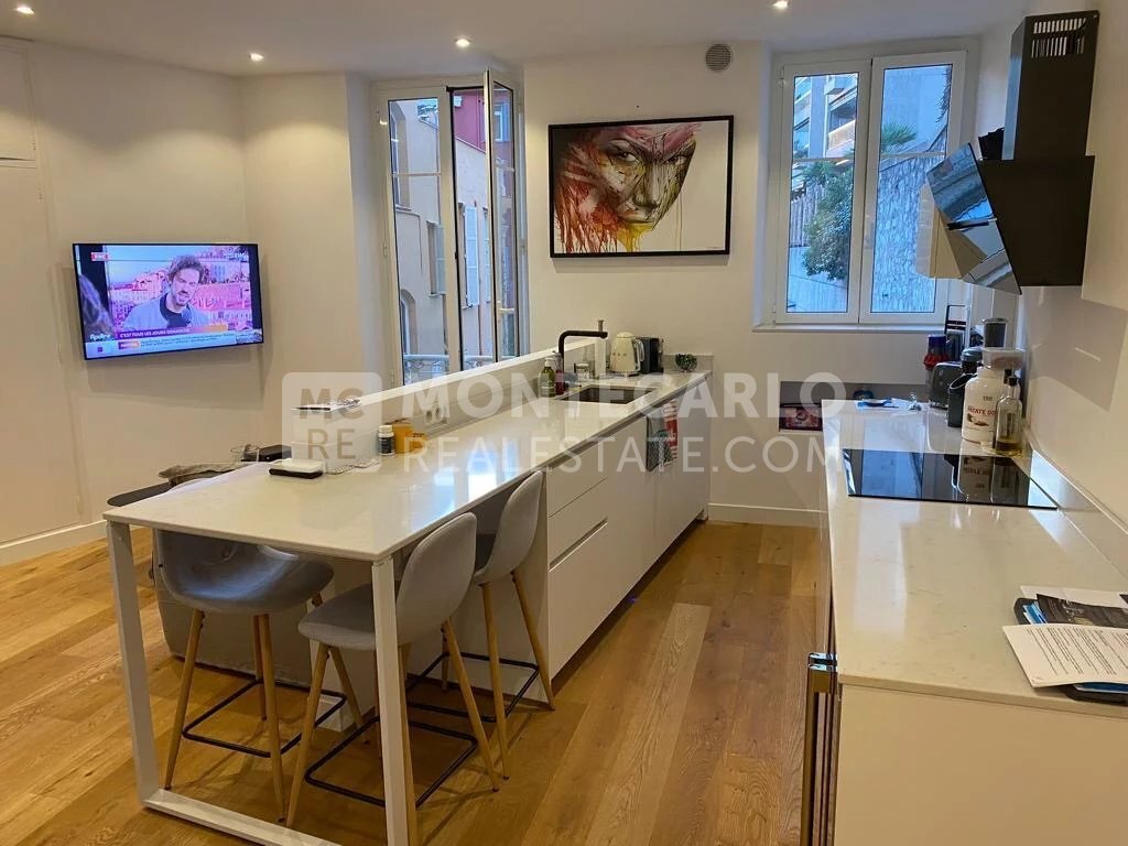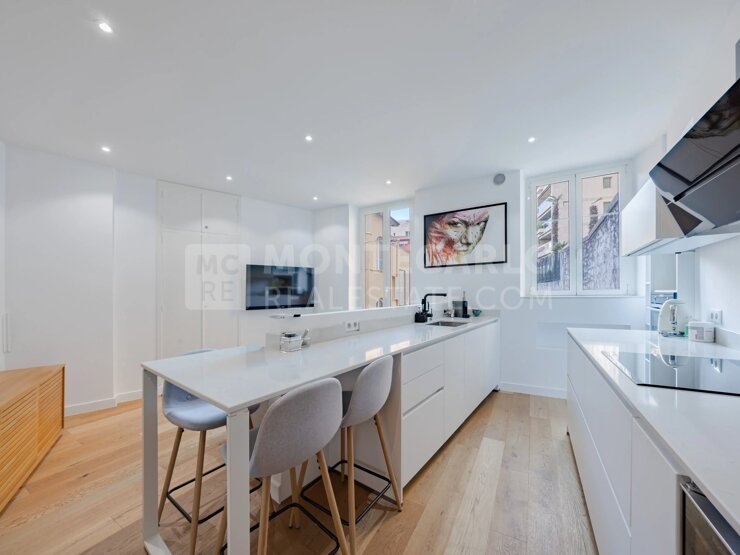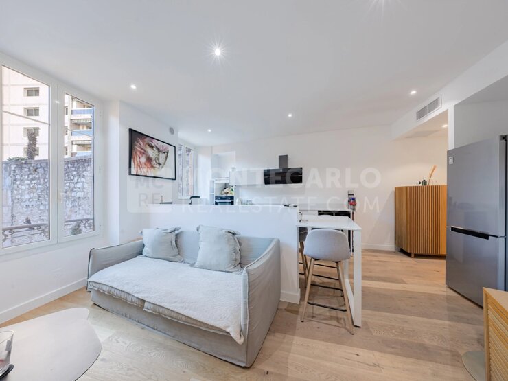 Completely renovated, this 2-room apartment offers a pleasant living space in a rapidly evolving neighborhood close to the center and Port Hercule, thanks to its proximity to the train station. The building is set back from the road and offers a quiet setting. Perfect for a couple moving to Monaco, as the building has very low condominium charges. This 56 m2 apartment is located on the 3rd and top floor, without elevator, and comprises an entrance hall, a living room with open kitchen offering a view of the greenery, a large bedroom and a shower room.