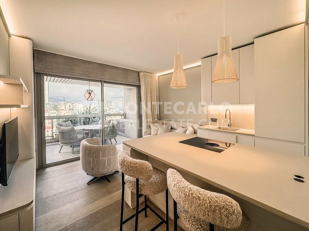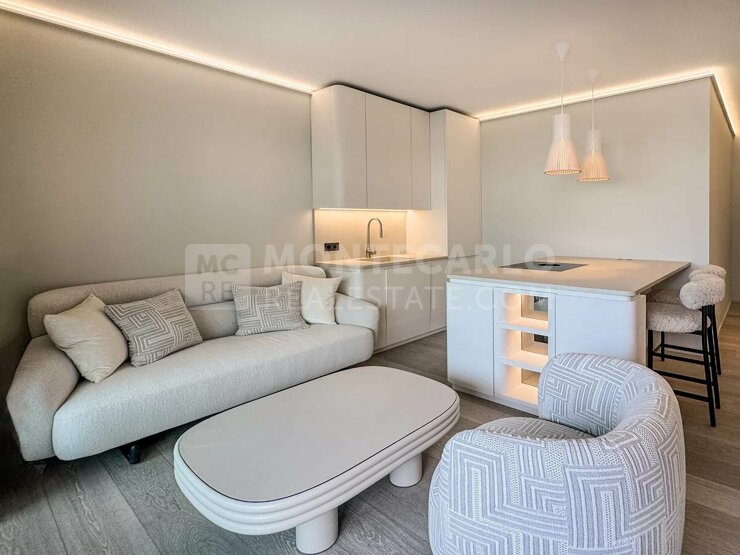 This newly renovated and fully furnished apartment combines stylish design, high-quality features, and an incomparable location. The selection of materials places the utmost importance on luxury, functionality, and timeless elegance – ideal for those who appreciate the extraordinary. The light-flooded living area with a modern, open, fully equipped kitchen creates an inviting atmosphere and opens directly onto the spacious terrace. Here you will find the perfect setting for relaxed hours and convivial evenings. Equipped with a dining table and a comfortable daybed, it offers a unique outdoor living experience. The cozy living area with a television also invites you to unwind. The elegant bedroom with ample storage space ensures peace and retreat. The stylish marble bathroom impresses with additional storage options and emphasizes the commitment to the highest level of living comfort. Just a few minutes’ walk separates you from the legendary Casino, the Hotel de Paris, as well as exclusive boutiques and charming cafés. This exceptional offer is rounded off by a 24/7 concierge service.