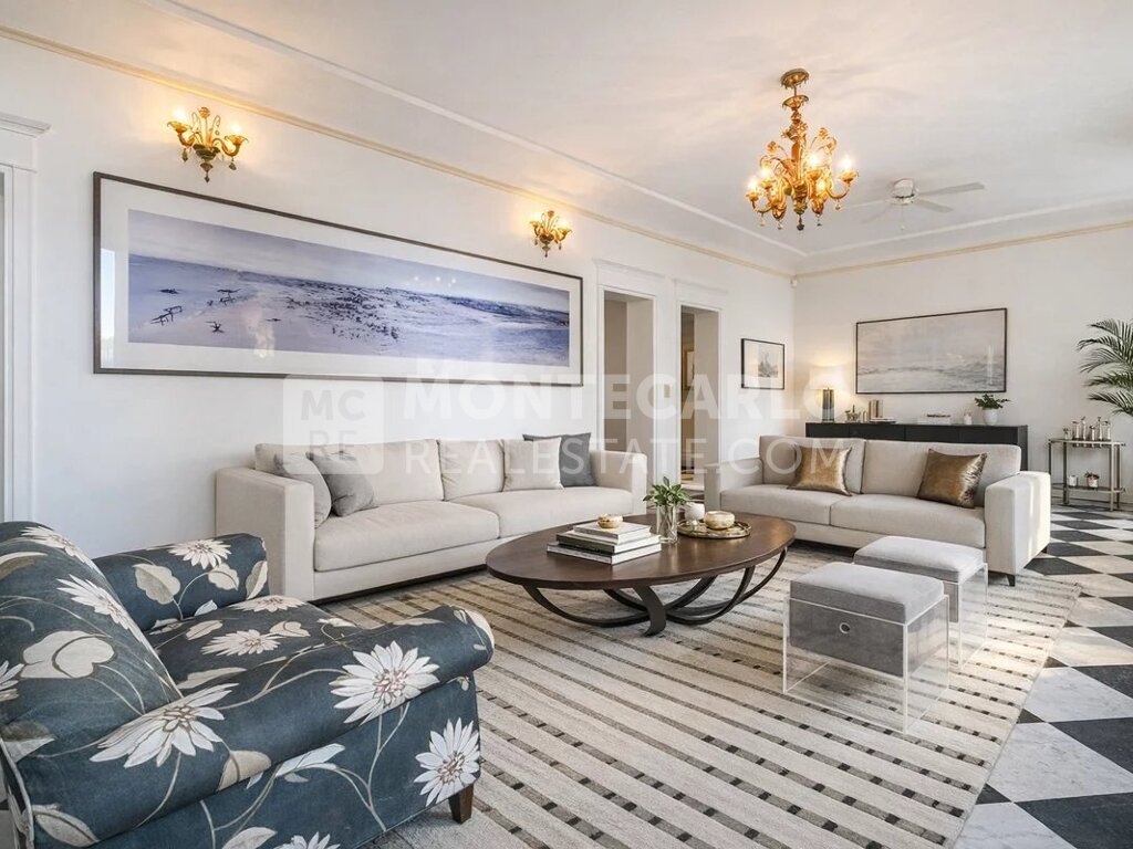 Situated in a prime central location in Monte-Carlo, this exceptional apartment is set within an elegant bourgeois building and benefits from a rare private garden, offering a unique sense of privacy and seamless indoor-outdoor living. With its own independent entrance, entirely separate from the main building, the property feels more like a private home rather than a conventional apartment. Generous volumes, high ceilings, and refined architectural features create a warm and character-filled atmosphere throughout. The accommodation comprises a spacious entrance hall, an expansive reception room, and a secondary lounge that may be converted into a 5th bedroom or large office. The property currently offers a total of four bedrooms, with ensuite arrangements, alongside a separate kitchen, a guest toilet, and laundry room. A large cellar (29m2) directly accessible from the apartment, offers ample storage options. A rental parking space in close proximity is available for takeover.