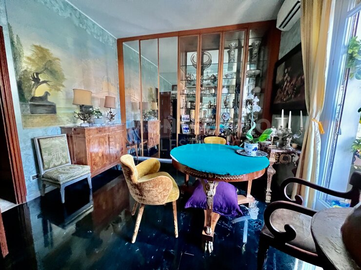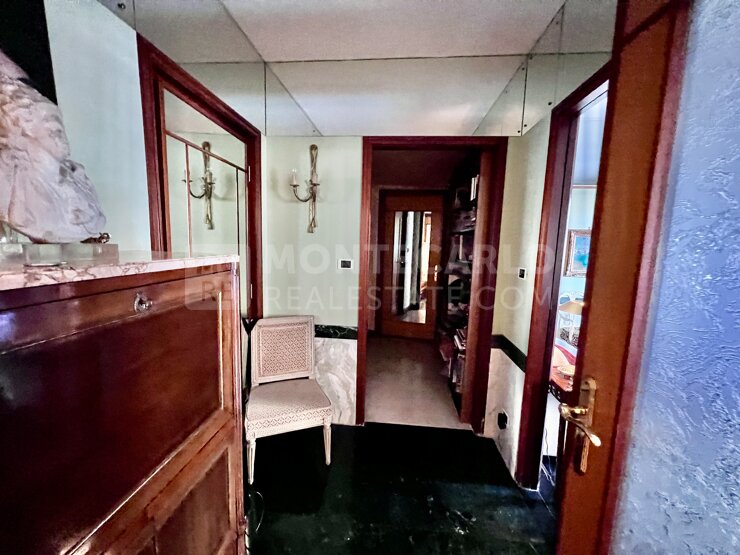Casabella - Situated in an elegant bourgeois residence in Monaco, this cross-through apartment is located along Boulevard des Moulins, offering easy access to all amenities, the Casino Square, and the Larvotto beaches. It enjoys a pleasant view of Place des Moulins and the sea. The apartment, which can be converted into a four-room unit, stands out for its spacious layout and includes: