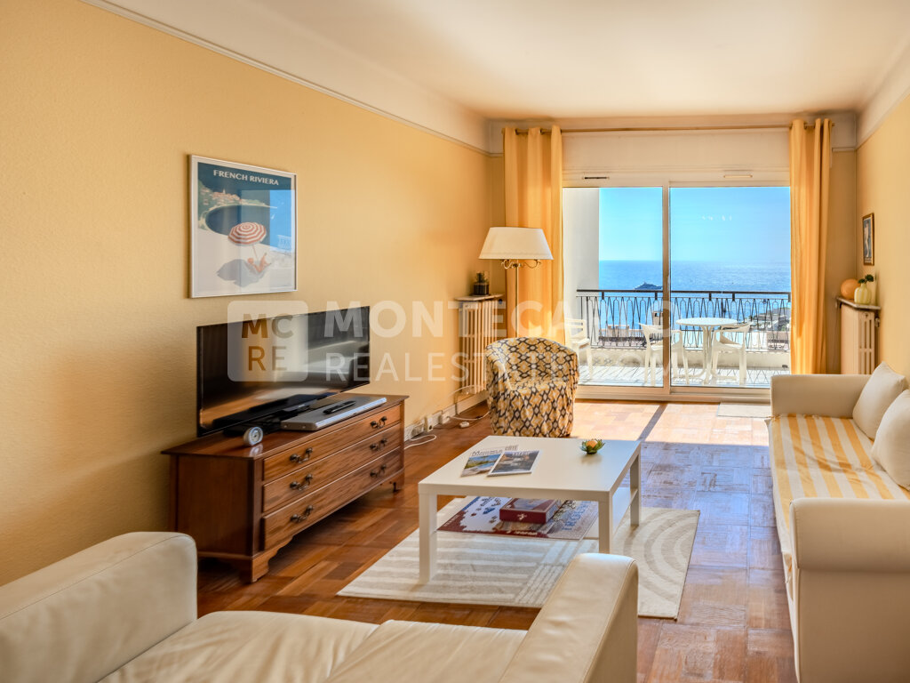 The apartment boasts a breathtaking sea view, stretching from Pointe de Cap Martin on the left to the Oceanographic Museum on the right.