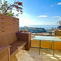 In the Moneghetti district, this beautiful apartment with a rooftop terrace enjoys optimal sunlight throughout the day and offers a panoramic view of the sea, the port, and le Rocher.
