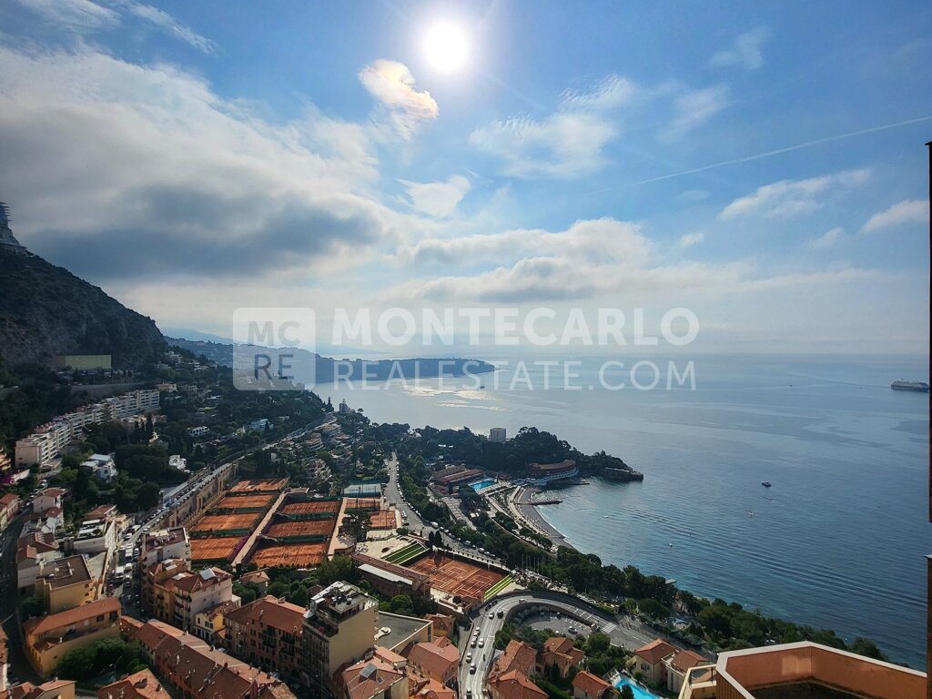 This exceptional duplex apartment, situated on a high floor within the prestigious and highly sought-after luxury residence of Parc Saint Roman, offers an unparalleled living experience with breathtaking panoramic views,
