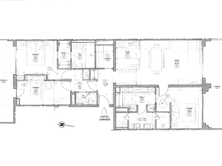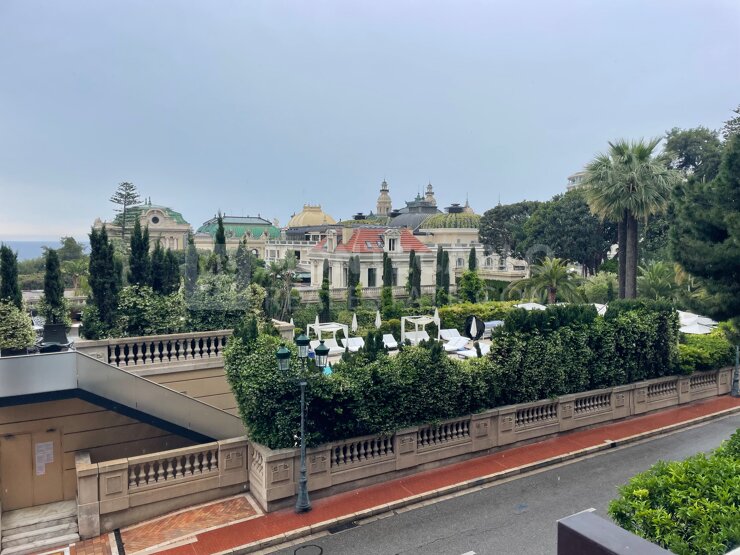An entrance, living room with beautiful kitchen opening onto a large terrace, view of the terraces of the casino garden and the Metropole, laundry room/pantry, master bedroom en suite with large dressing room and bathroom, a bedroom with large dressing room and shower room, and a bedroom with shower room. Terrace at the back overlooking Avenue de la Madone.