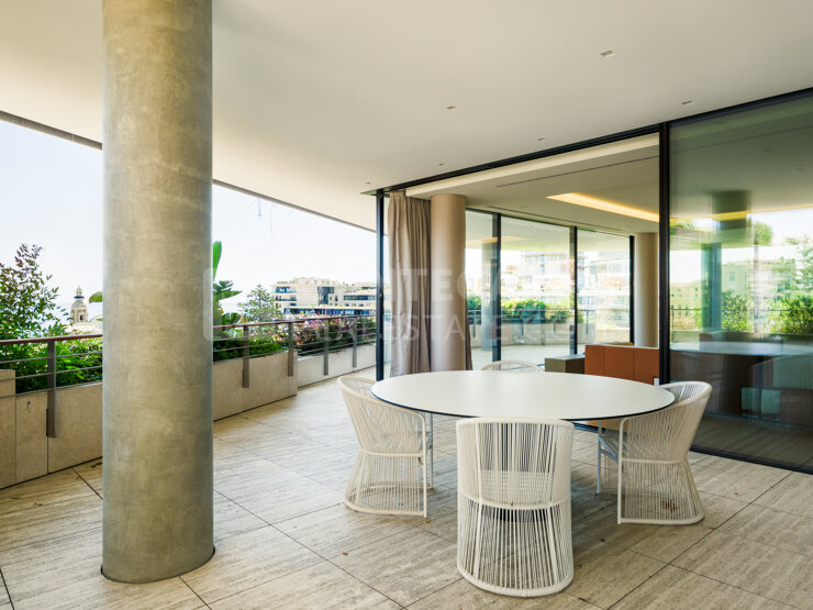 THIS GORGEOUS PROPERTY INCLUDES A LARGE LIVING ROOM WITH FLOOR TO CEILING WINDOWS, OPENING ONTO A TERRACE THAT FACES CASINO SQUARE