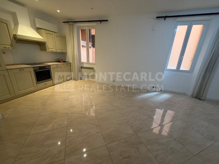 Located on ground floor of the building, with a total area about 70 Sqm, it is composed of : a living room with an American equipped kitchen, two bedrooms and two shower rooms, and an outdoor space.