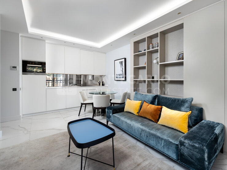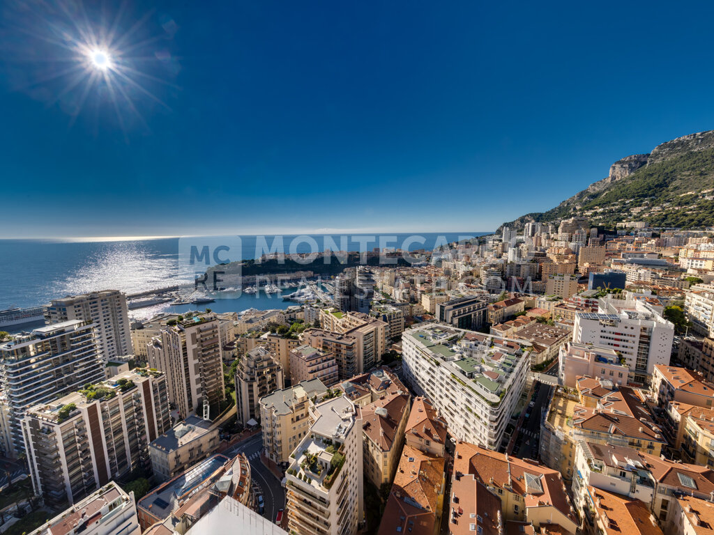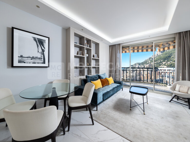 Perched on the 27th floor of the iconic Millefiori building, this stylishly renovated one-bedroom apartment offers sweeping, panoramic views over Monaco extending to the sea.