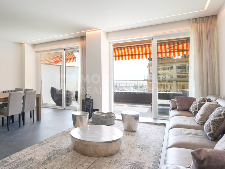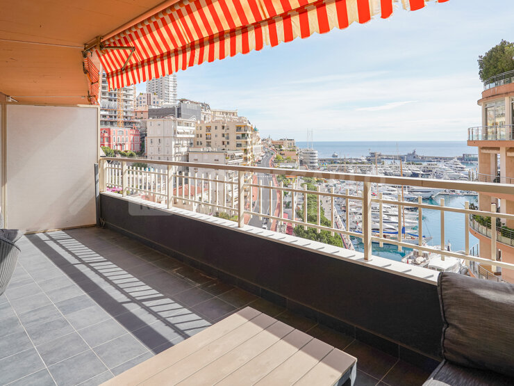 Ideal for a family. Very beautiful flat partially renovated located on the top floor of a central residence on the seafront, offering a beautiful view of the Formula 1 Grand Prix and the port of Monaco.