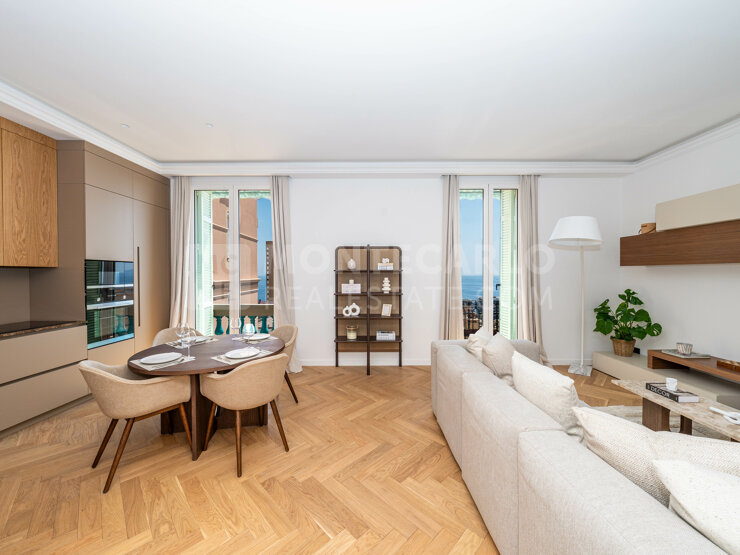In the heart of the Monte Carlo district, close to all amenities, superb 3-room apartment completely renovated with high quality finishes, and a splendid view of the sea.