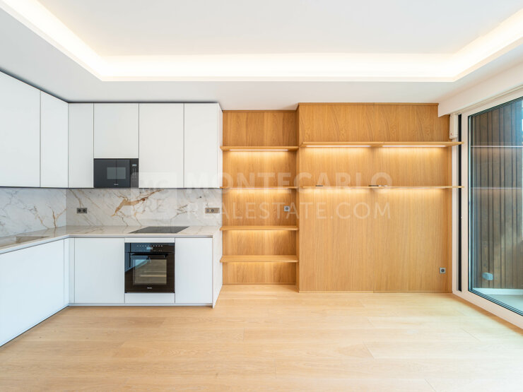 With a total area of 65 m², it consists of an entrance, a bright living room with open kitchen, a bedroom and a bathroom. The living room and bedroom open onto a beautiful terrace offering a glimpse of the sea.