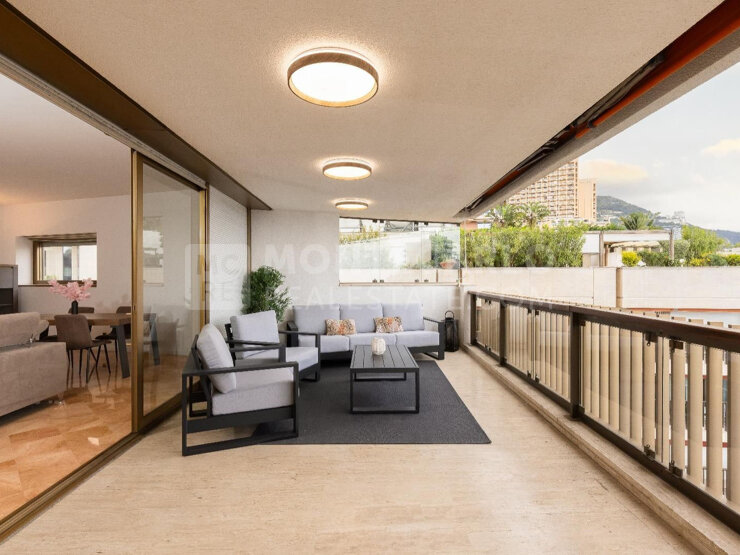 2 bedroom apartment, in very good condition, on the 4th floor, with panoramic sea view, approximately 164 m² of total surface area, including 141 m² of living space and 23 m² of terrace. Description: Entrance, large living room opening onto the terrace with view, large fitted kitchen with dining area, 2 bedrooms with loggia, bathroom, shower room, 1 parking space. This luxury residence offers a swimming pool with natural sea water, heated, with a lifeguard during opening hours, with a bar, a restaurant, a gym with many facilities. Two entrances on each side, with 24-hour concierges. Available - Monthly rent €18,400 + charges