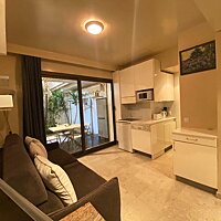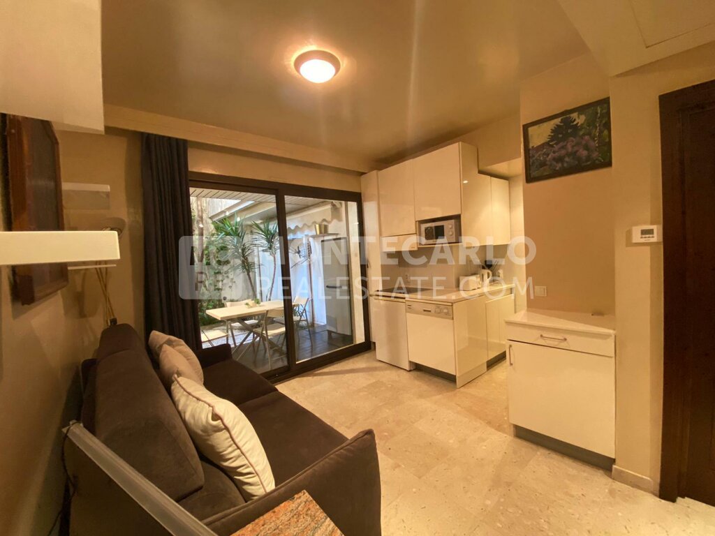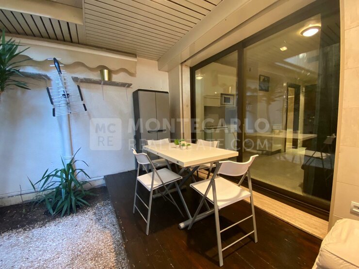 In a luxurious residence with concierge, very nice furnished studio in good condition with private fenced garden.